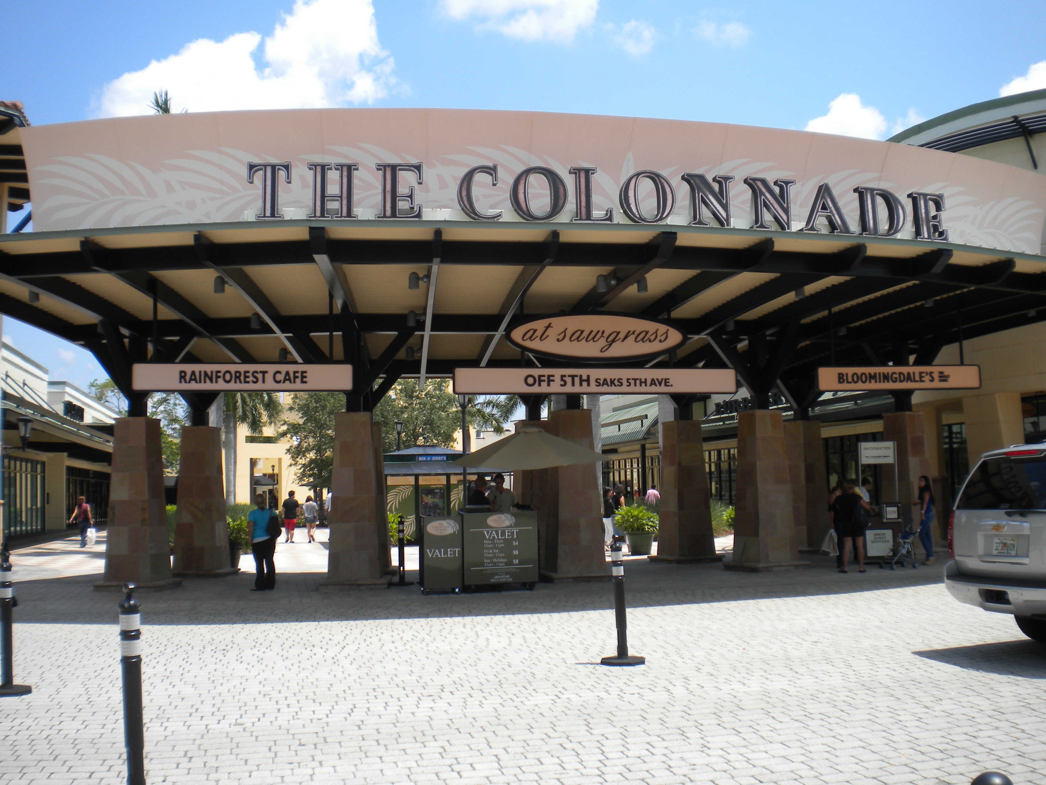 Sawgrass Mills Mall vue de dehors & The Colonnade, la partie extérieure luxe du mall
