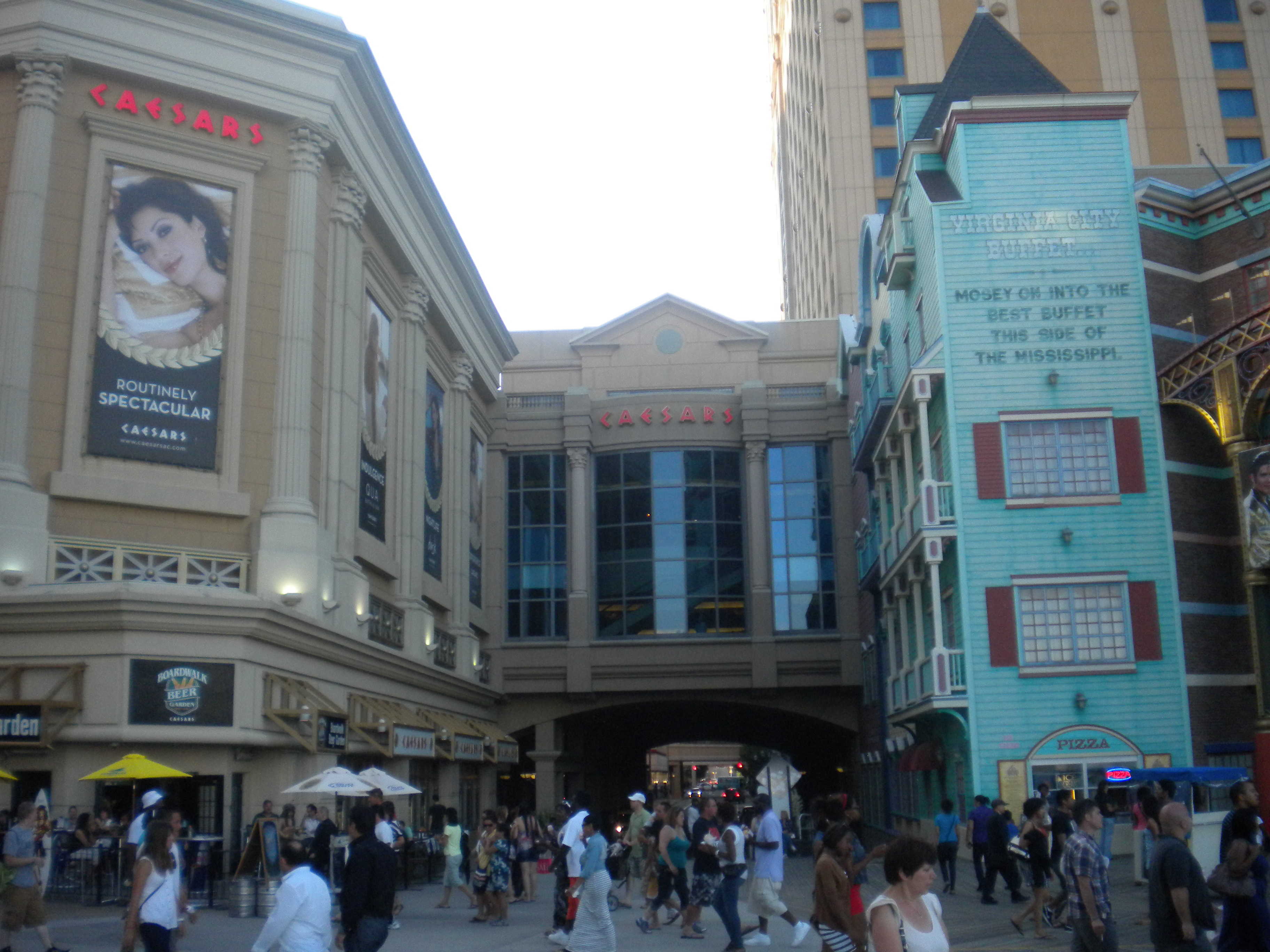 La promenade en bois est agréable et la plupart des plus grands casinos y sont concentrés, comme le Caesars Palace (que l’on voit cette fois-ci de l’autre côté de la facade), le Bally’s au style western, le Tropicana ou le Trump Taj Mahal.